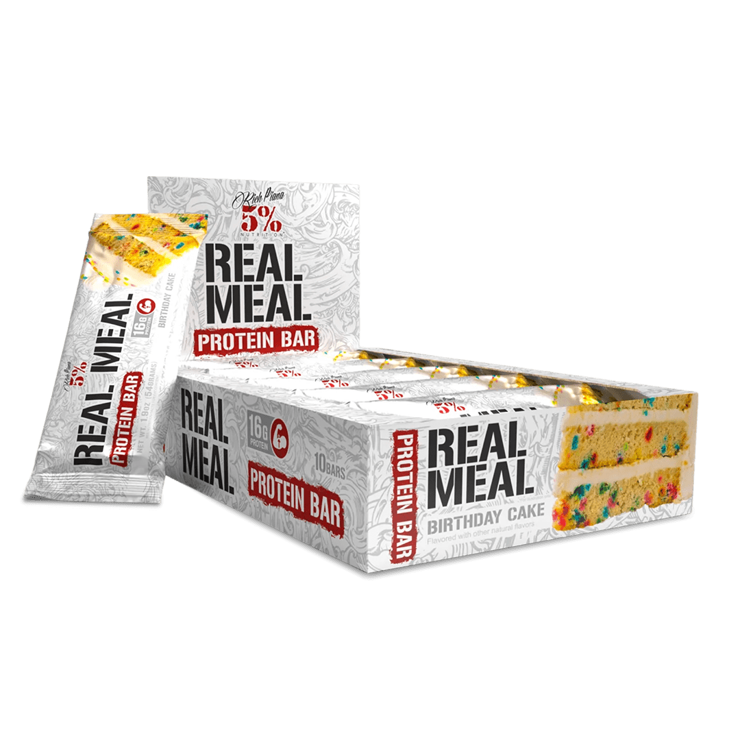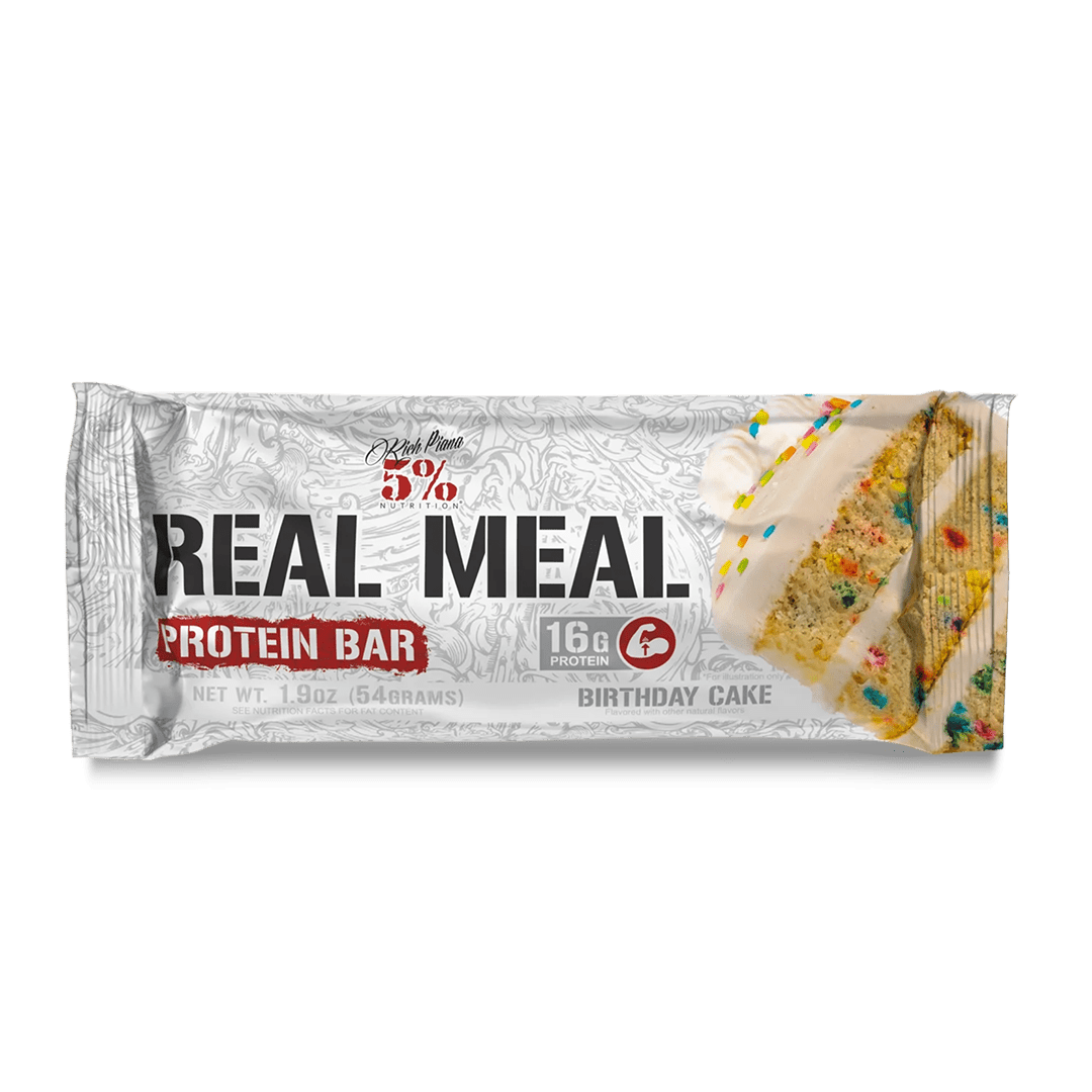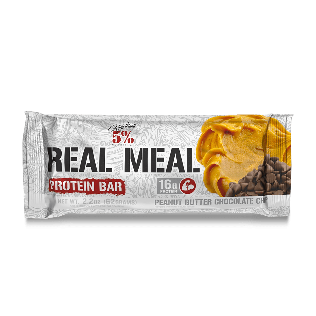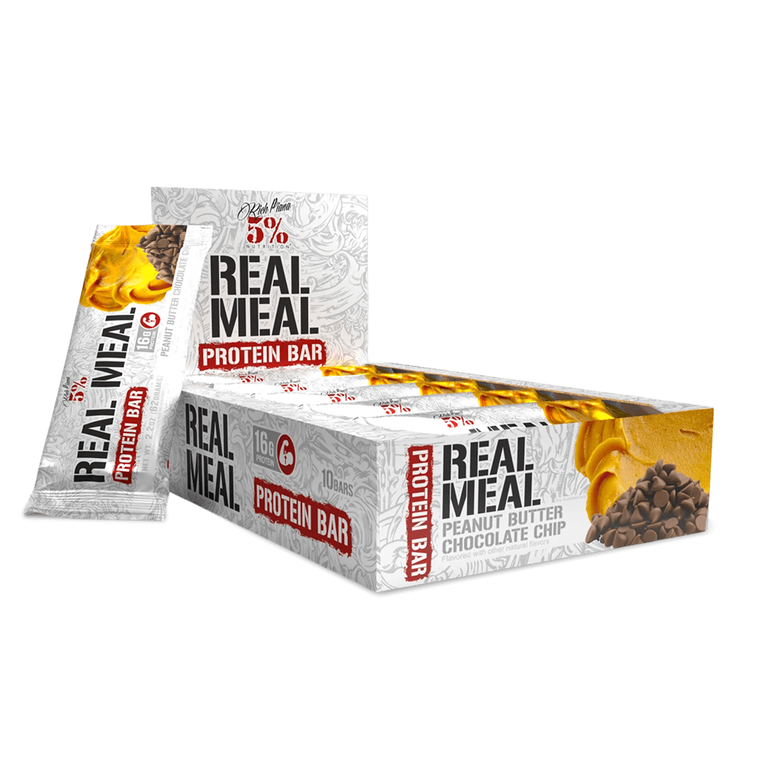 5% Nutrition Real Meal Protein Bars are naturally flavored, taste delicious, and have an amazing consistency – they’re not too hard or too soft – they’re “just right.” Don’t settle for a protein bar you’d have to choke down while gulping a gallon of water along with it. Get the right bar the first time with a Real Meal Protein Bar.