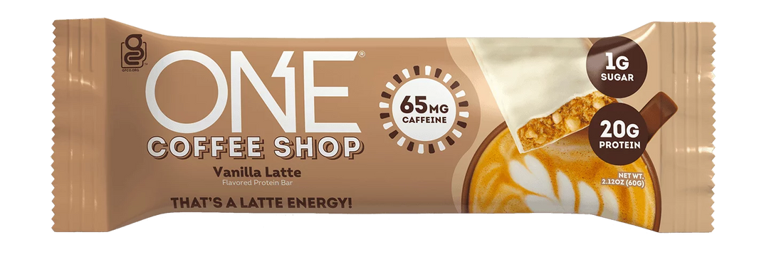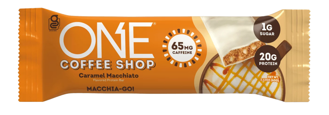 Let’s macchia-GO! ONE Coffee Shop Caramel Macchiato flavored protein bars go above and beyond with 20 grams of protein and 1 gram of sugar, plus an espresso-shot-sized boost of caffeine. Enjoy the dark and creamy flavor combination of coffee and caramel, while getting totally powered up for your day. Go ahead, grab one and be your own BAR-ista!